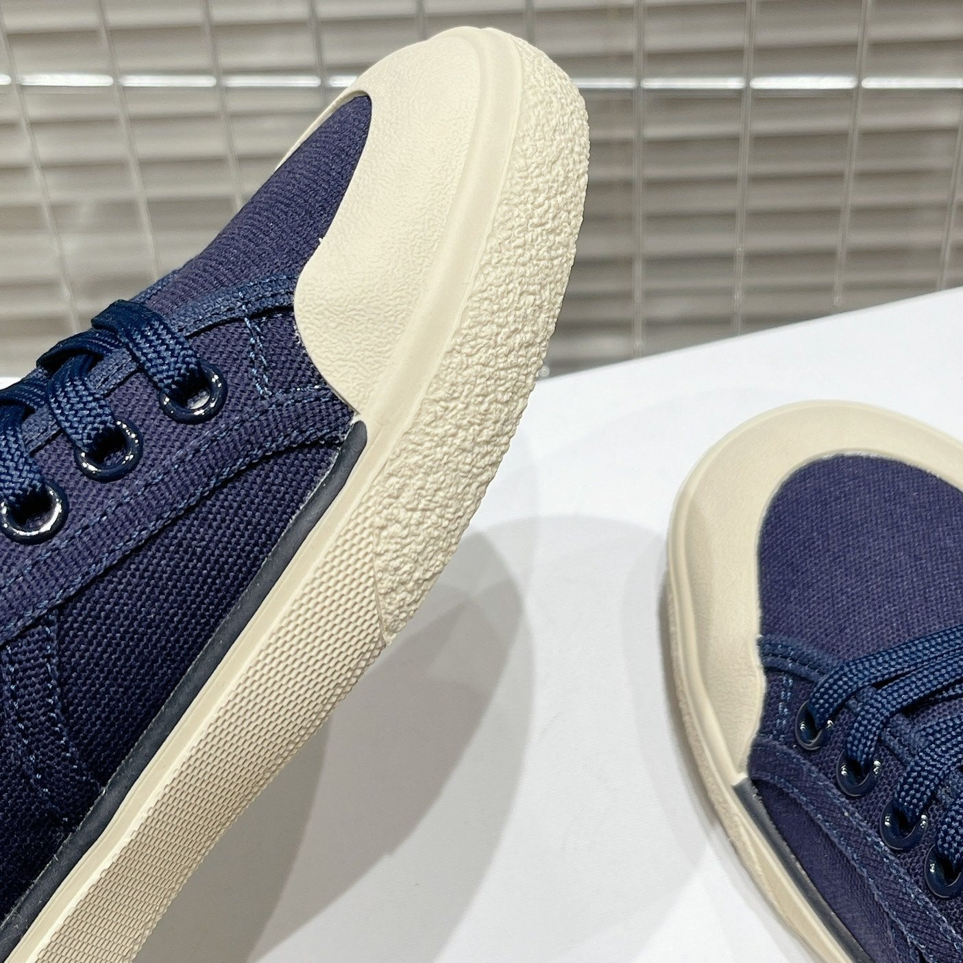 JANE SNEAKERS LOW LACE-UP WITH TRIOMPHE PATCH IN CANVAS AND CALFSKIN NAVY