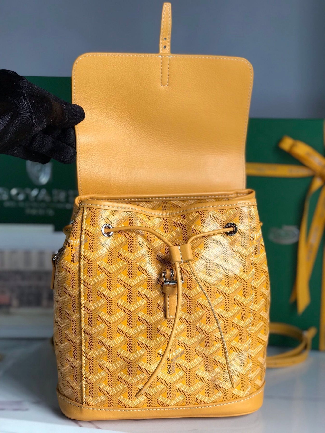 ALPIN MINI BACKPACK 21 IN YELLOW LAMBSKIN AND GOYARDINE CANVAS