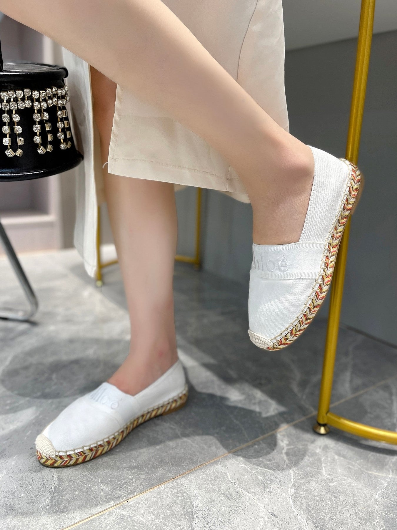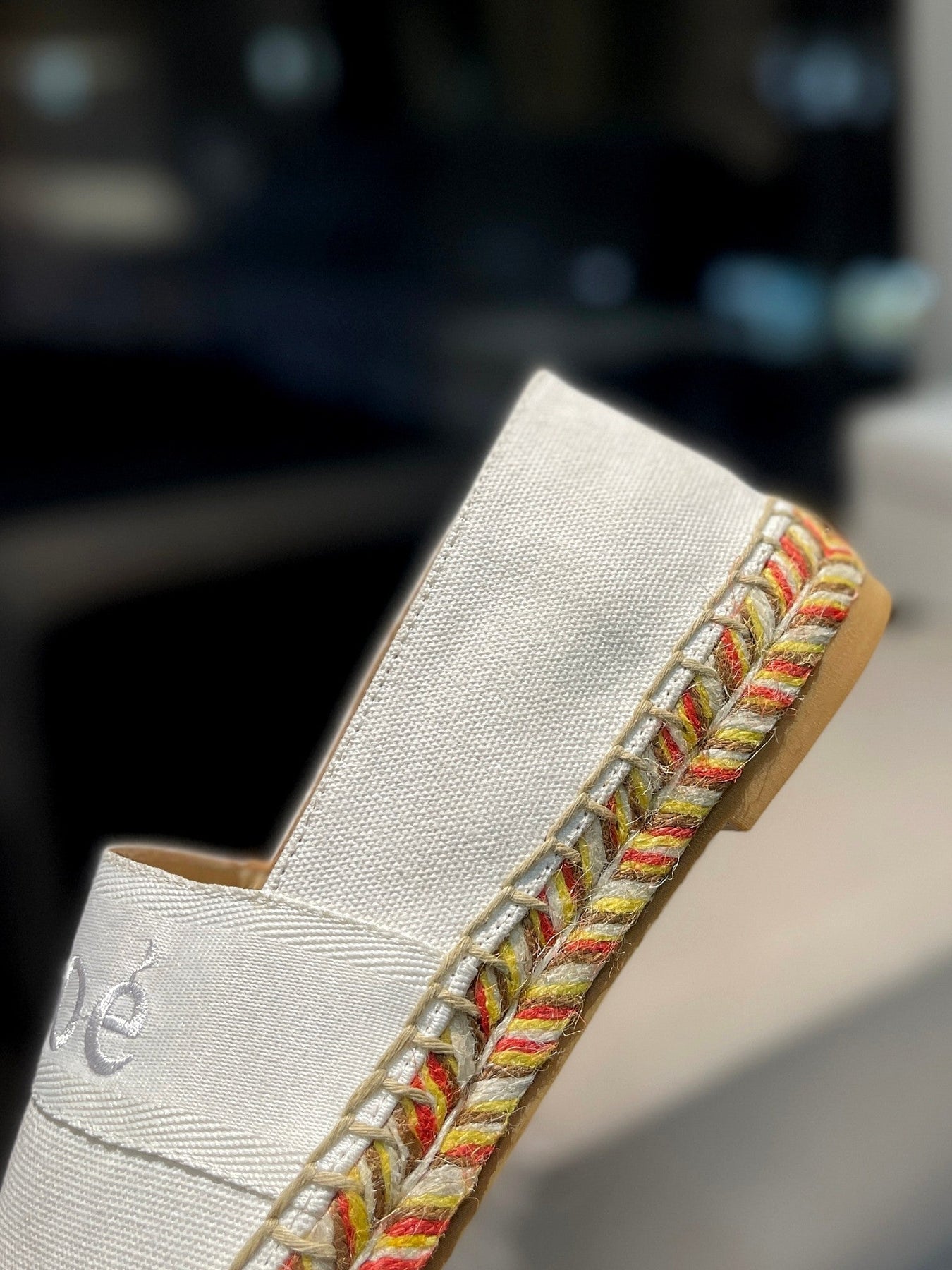 LOAFERS IN WHITE FABRIC AND RAFFIA